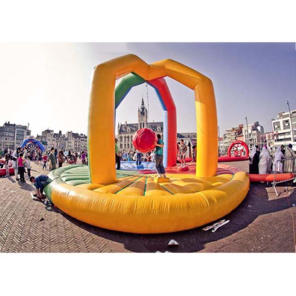 This Human Demolition Wrecking Ball game features 4 inflatable pedestals and a huge inflatable wrecking ball with beautiful art work. This game is huge and will draw a big crowd at you party or event.
